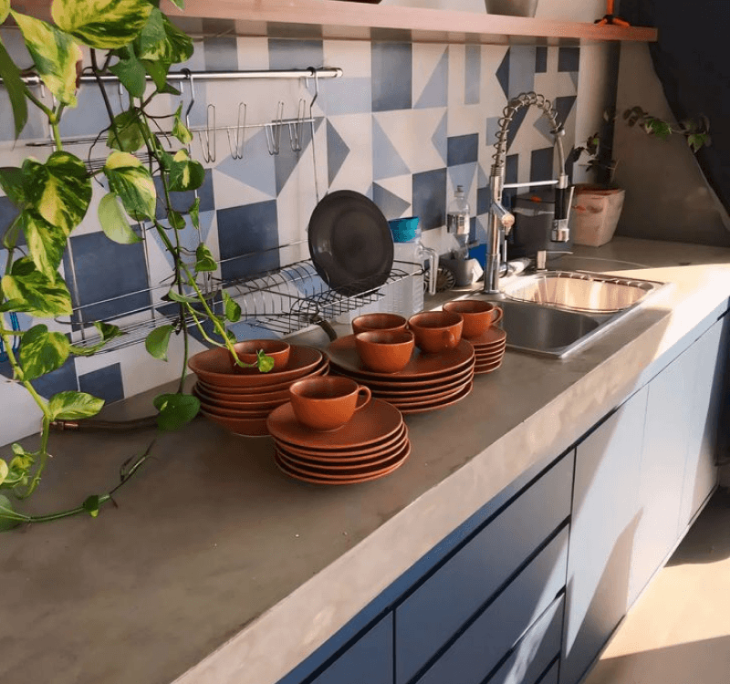 Bancadas em cimento queimado trazem personalidade e um toque industrial ao ambiente. Porém, como exigem técnica avançada para evitar fissuras, muitos moradores preferem utilizar: