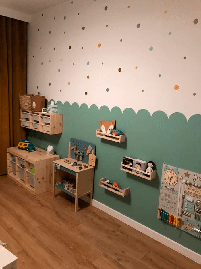 Se você busca proporcionar autonomia ao seu filho, o ideal é deixá-las acessíveis ao alcance dos pequenos, como acontece nos quartos de inspiração montessoriana. Assim, eles também ajudam a guardar os itens após utilizá-los, o que também cria um senso de responsabilidade.